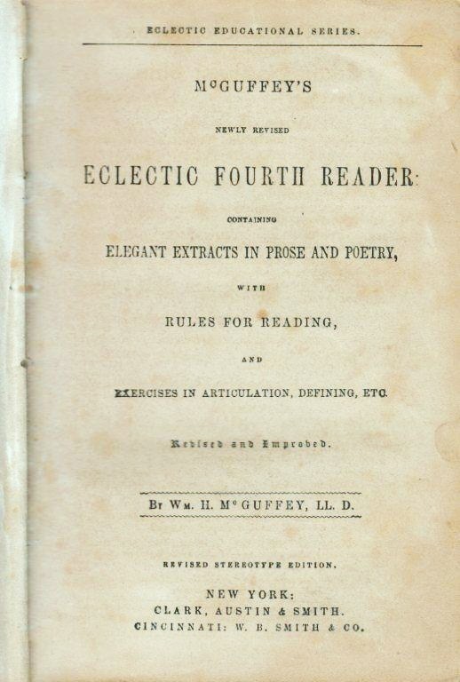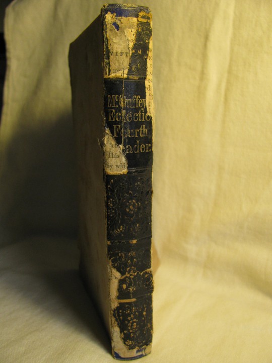 Here is the first really old book I found, McGuffey’s Eclectic Fourth Reader, published in 1853 by Winthrop B Smith. In about 1990 I was browsing around one of the wonderful used book stores on 16 Avenue NW (that is no longer there), and when I told the owner that I collected old school readers, he said he didn’t have any upstairs, but I could look around in the basement. I picked through boxes and bags of books and found this gem. I think I paid $5 for it.