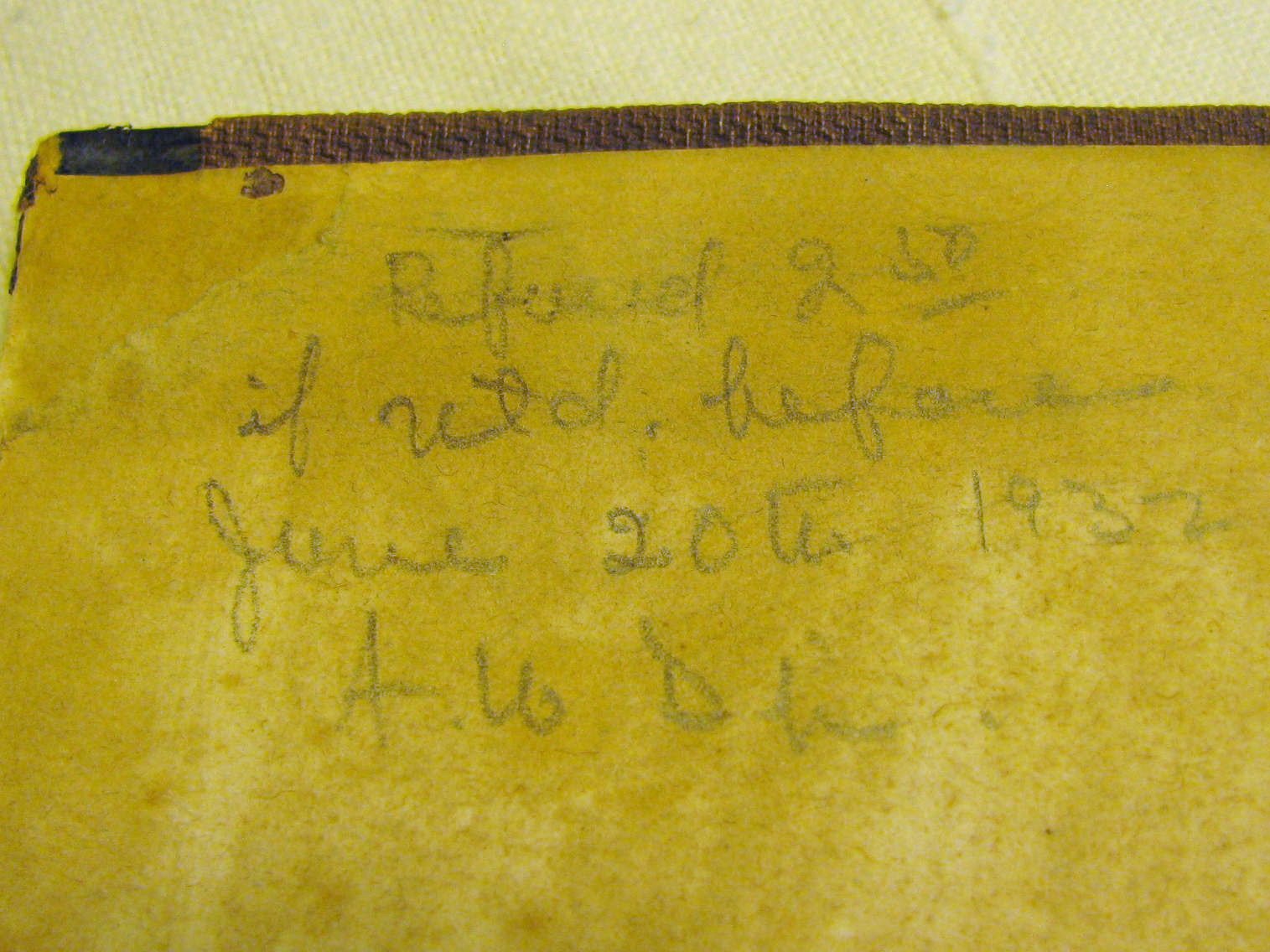 In the back there is a refund notice: “Refund 2.50 if returned before June 20, 1932, A.W. ___”. It’s interesting to think that around 1932 the book was already 80 years old, so perhaps it was in the reference section of a library.