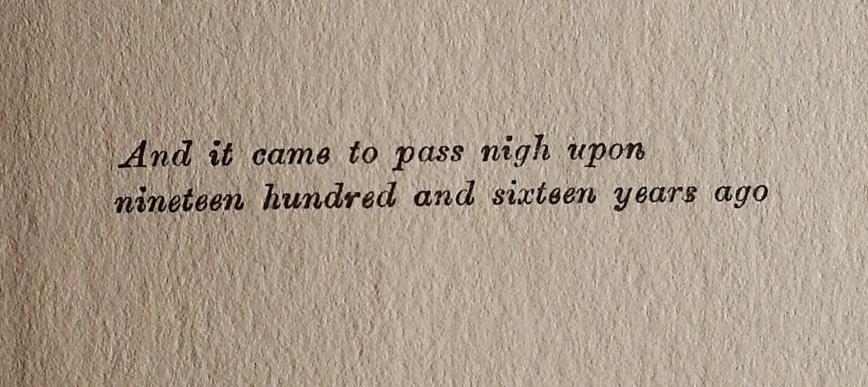 “And it came to pass nigh upon nineteen hundred and sixteen years ago”
