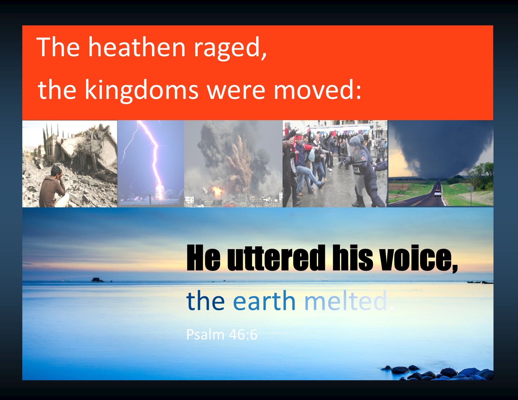 I added my visual interpretation of the verse, using pictures that displayed the chaos and terrors of today’s world in contrast with the calm and strength in God Almighty, the highest authority in the universe.