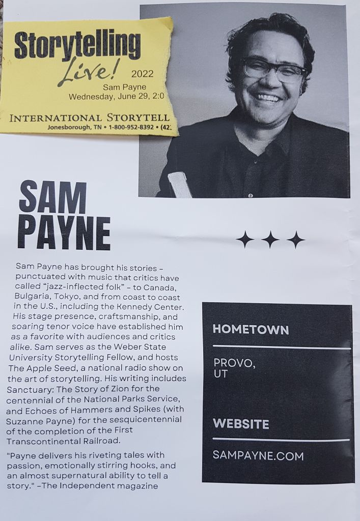 I am travelling in the Southeast U.S. and am near Jonesborough, Tennessee, a community established in 1779, where storytelling enthusiasts gather at the International Storytelling Center.
